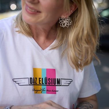 White DazElusium Blue Geometrical logo short sleeve Tshirt